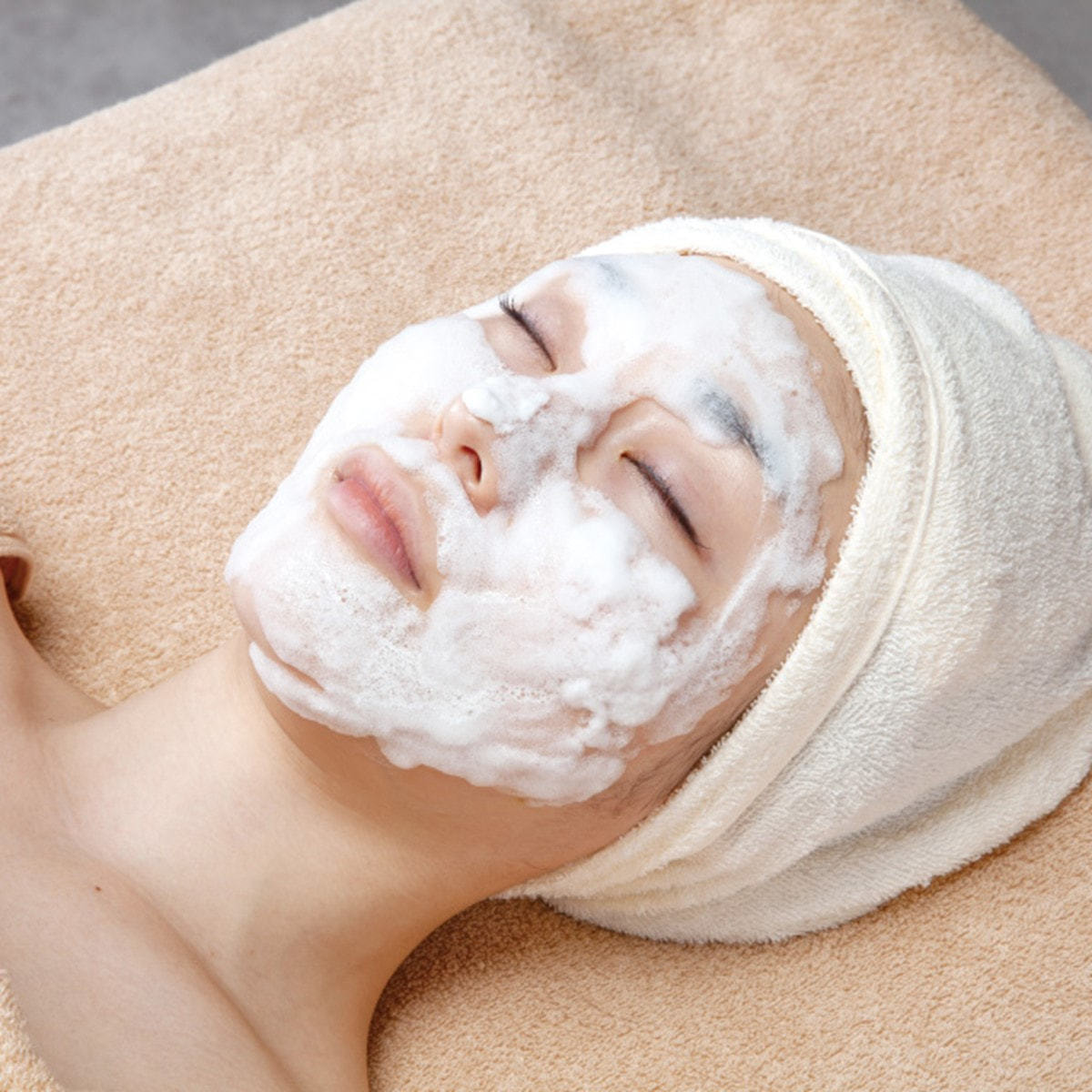 洗い流さずに拭き取る場合は、スポンジとホットタオルで丁寧に拭き取ってください。