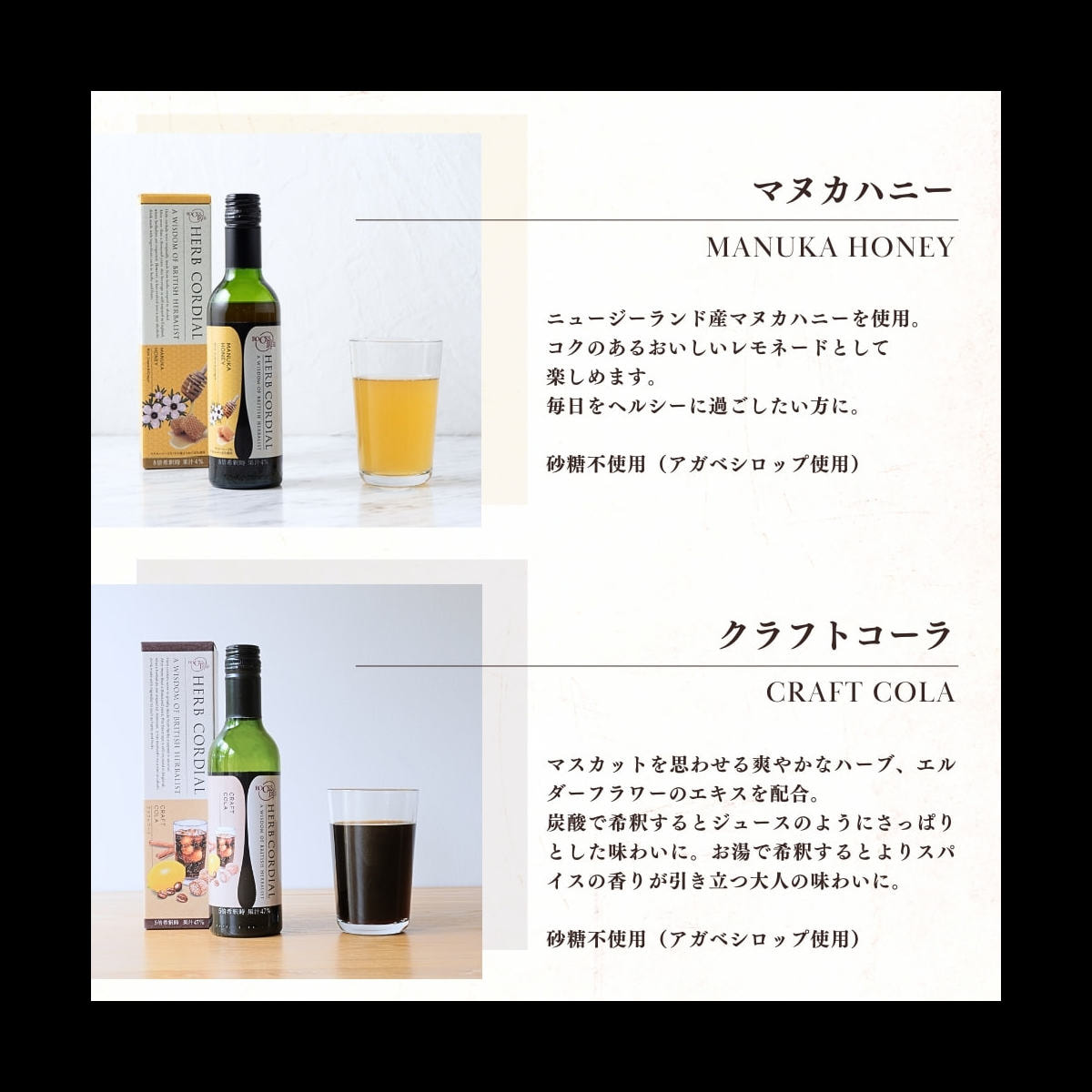 もともとはハーブをアルコールに漬けた飲み物であったコーディアル。千年を優に越える時を経て、ハーバリストの活躍するイギリスで、摘みたてのハーブや新鮮な果物を原料としたノンアルコール濃縮飲料として生まれ変わりました。